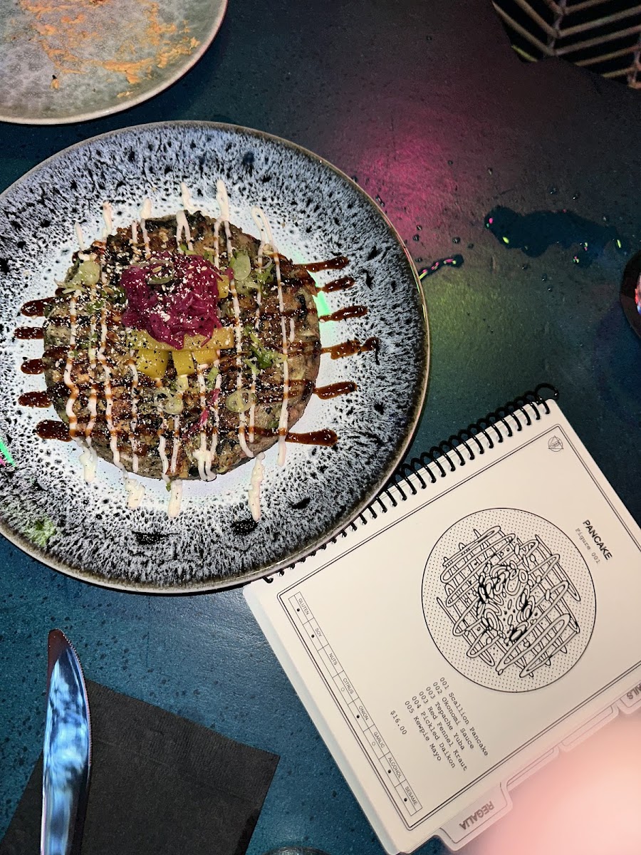 Scallion Pancake Okonomi Sauce Tepache Yuba Red Fennel Kraut Pickled Daikon Kewpie Mayo